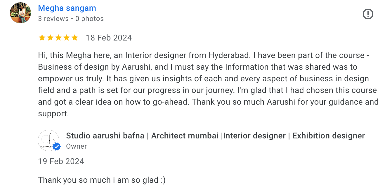 500 + Students, designers, architects, already enrolled in Aarushi's Business of Design