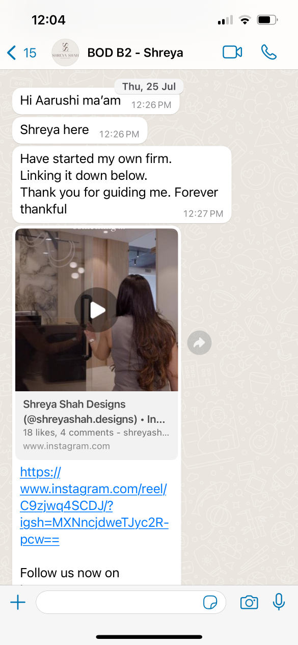 Whether you're just starting out or looking to take your design career to the next level, this course is built for you. At Studio Aarushi Bafna, we focus on the Business of Design — not just theory, but real-world skills every designer needs. From conducting impactful client meetings and defining your unique style to managing finances, building your brand, and getting media recognition — we help you step into the industry with confidence. Join us — and become the designer everyone’s talking about.